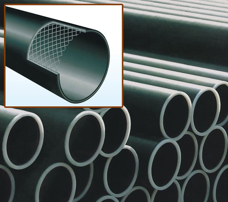 鋼絲網骨架復合管是一款改良過的鋼骨架塑料復合管。這種管材又稱為srtp管。這種管道是用高強度過塑鋼絲網骨架和熱塑性塑料聚乙烯為原材料,鋼絲纏繞網作為聚乙烯塑料管的骨架增強體,以高密度聚乙烯(HDPE)為基體,采用高性能的HDPE改性粘結樹脂將鋼絲骨架與內、外層高密度聚乙烯緊密地連接在一起,使之具有優良的復合效果。因為有了高強度鋼絲增強體被包覆在連續熱塑性塑料之中,因此這種復合管克服了鋼管和塑料管各自的缺點,而又保持了鋼管和塑料管各自的優點。